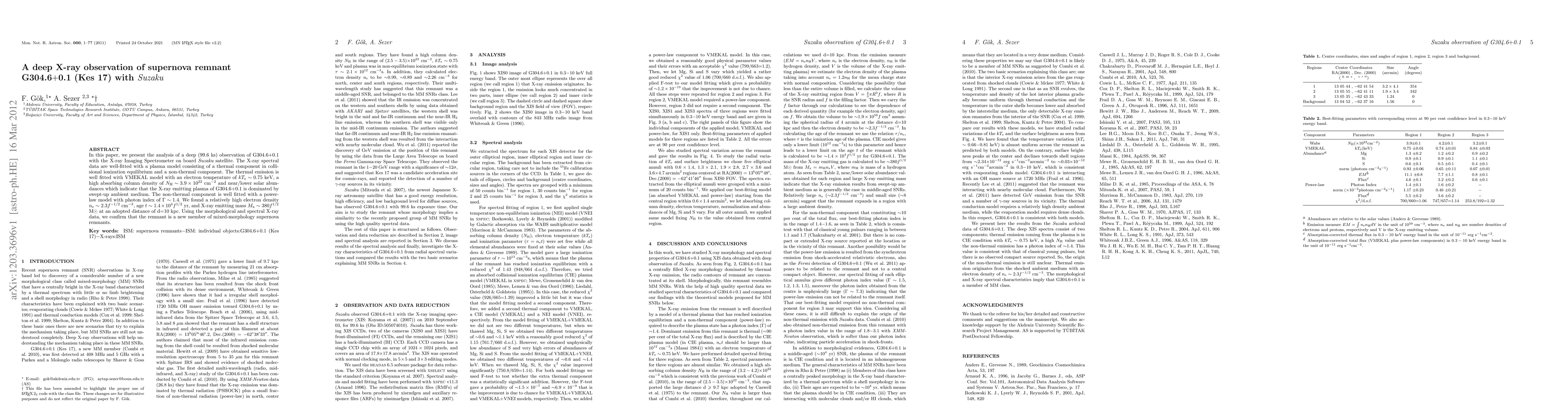 This paper analyzes a deep X-ray observation of the supernova remnant G304.6+0.1 using the Suzaku satellite, revealing a thermal component and a non-thermal power-law emission. The remnant is identified as a new mixed-morphology supernova, with an electron density, age, and mass indicating it is dominated by swept-up ambient medium.