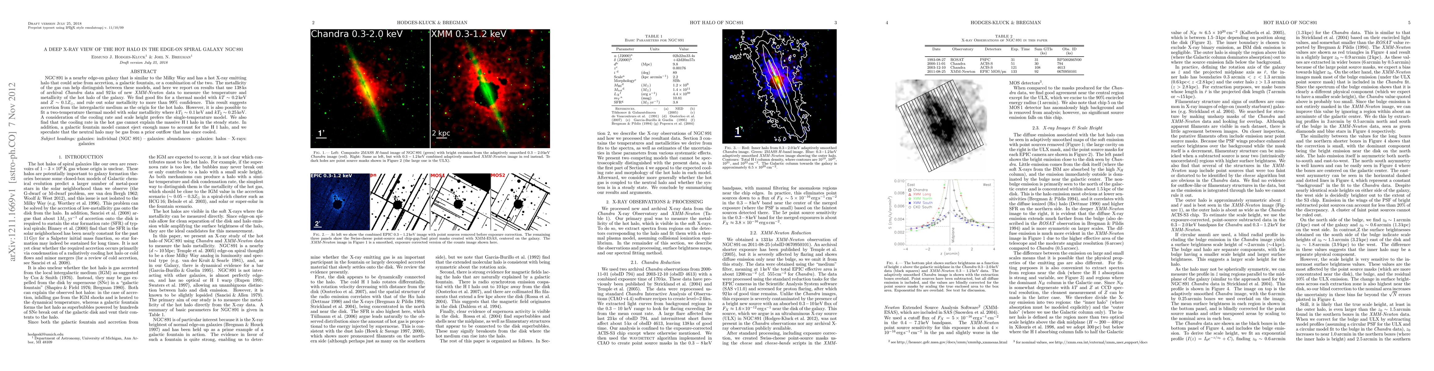 This study uses Chandra and XMM-Newton data to analyze the hot X-ray emitting halo of NGC 891, finding a low metallicity (~0.1 solar) that supports an accretion origin. A two-temperature model with solar metallicity is also possible but less favored due to cooling rate considerations.