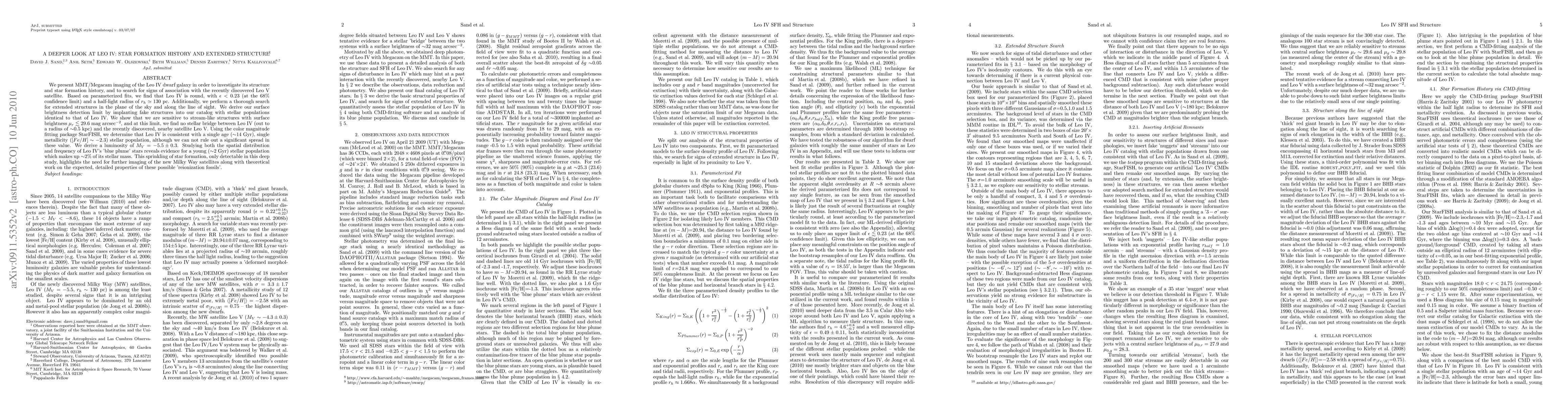 We present MMT/Megacam imaging of the Leo~IV dwarf galaxy in order to investigate its structure and star formation history, and to search for signs of association with the recently discovered Leo~V satellite. Based on parameterized fits, we find that Leo~IV is round, with $\epsilon < 0.23$ (at the 68\% confidence limit) and a half-light radius of $r_{h} \simeq 130$ pc. Additionally, we perform a thorough search for extended structures in the plane of the sky and along the line of sight. We derive our surface brightness detection limit by implanting fake structures into our catalog with stellar populations identical to that of Leo~IV. We show that we are sensitive to stream-like structures with surface brightness $\mu_{r}\lesssim29.6$ mag arcsec$^{-2}$, and at this limit, we find no stellar bridge between Leo IV (out to a radius of $\sim$0.5 kpc) and the recently discovered, nearby satellite Leo V. Using the color magnitude fitting package StarFISH, we determine that Leo~IV is consistent with a single age ($\sim$14 Gyr), single metallicity ($[Fe/H]\sim-2.3$) stellar population, although we can not rule out a significant spread in these value. We derive a luminosity of $M_{V}=-5.5\pm0.3$. Studying both the spatial distribution and frequency of Leo~IV's 'blue plume' stars reveals evidence for a young ($\sim$2 Gyr) stellar population which makes up $\sim$2\% of its stellar mass. This sprinkling of star formation, only detectable in this deep study, highlights the need for further imaging of the new Milky Way satellites along with theoretical work on the expected, detailed properties of these possible 'reionization fossils'.
