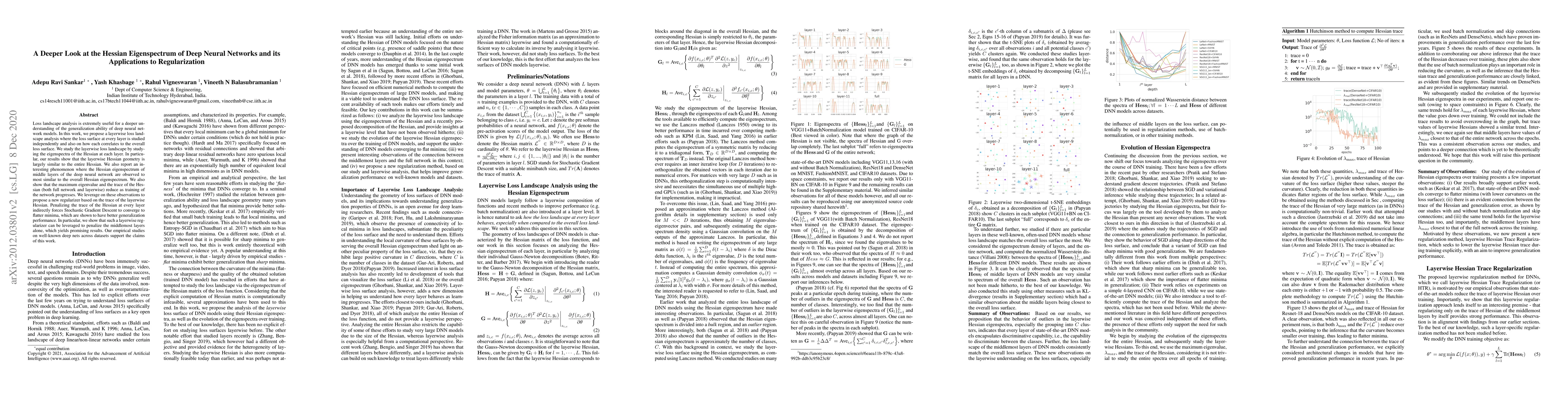 Loss landscape analysis is extremely useful for a deeper understanding of the generalization ability of deep neural network models. In this work, we propose a layerwise loss landscape analysis where the loss surface at every layer is studied independently and also on how each correlates to the overall loss surface. We study the layerwise loss landscape by studying the eigenspectra of the Hessian at each layer. In particular, our results show that the layerwise Hessian geometry is largely similar to the entire Hessian. We also report an interesting phenomenon where the Hessian eigenspectrum of middle layers of the deep neural network are observed to most similar to the overall Hessian eigenspectrum. We also show that the maximum eigenvalue and the trace of the Hessian (both full network and layerwise) reduce as training of the network progresses. We leverage on these observations to propose a new regularizer based on the trace of the layerwise Hessian. Penalizing the trace of the Hessian at every layer indirectly forces Stochastic Gradient Descent to converge to flatter minima, which are shown to have better generalization performance. In particular, we show that such a layerwise regularizer can be leveraged to penalize the middlemost layers alone, which yields promising results. Our empirical studies on well-known deep nets across datasets support the claims of this work
