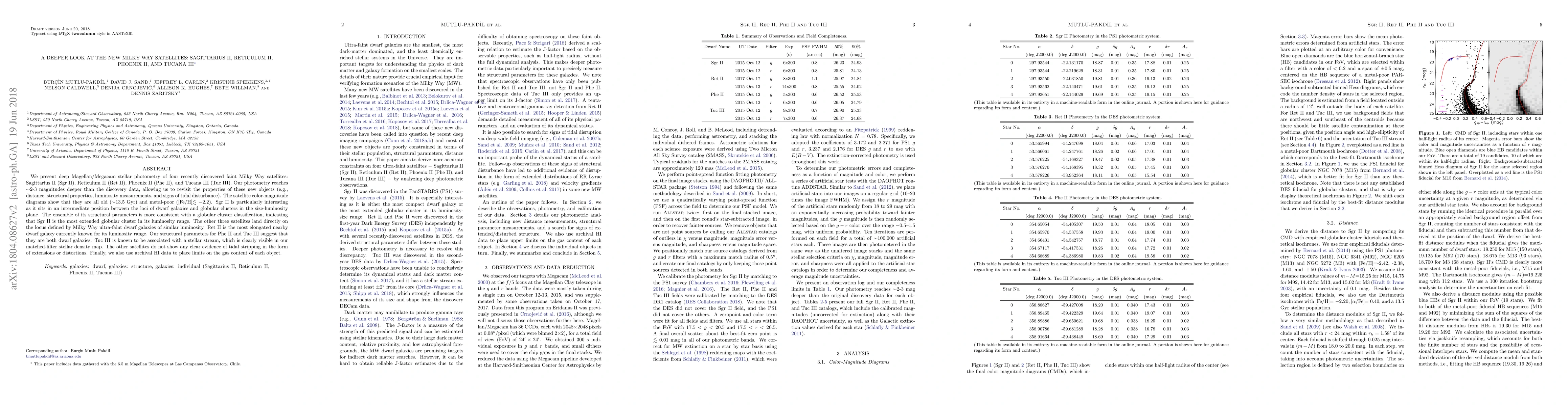 This paper uses deep stellar photometry from Magellan/Megacam to analyze four newly discovered Milky Way satellites: Sagittarius II, Reticulum II, Phoenix II, and Tucana III. The study reveals that these satellites are old and metal-poor, with Sgr II showing characteristics of both a globular cluster and a dwarf galaxy, while Ret II, Phe II, and Tuc III are classified as ultra-faint dwarf galaxies, with Tuc III linked to a visible stellar stream.