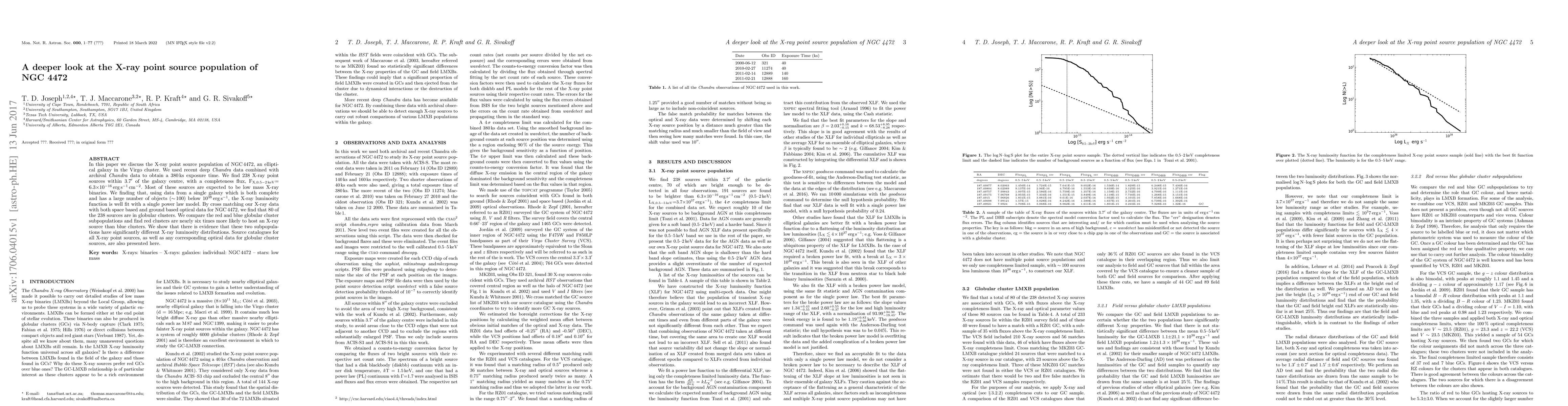 This paper analyzes the X-ray point source population of NGC 4472 using deep Chandra data, identifying 238 sources, mostly low mass X-ray binaries. It finds that red globular clusters are significantly more likely to host X-ray sources than blue ones, indicating different X-ray luminosity distributions between the two subpopulations.