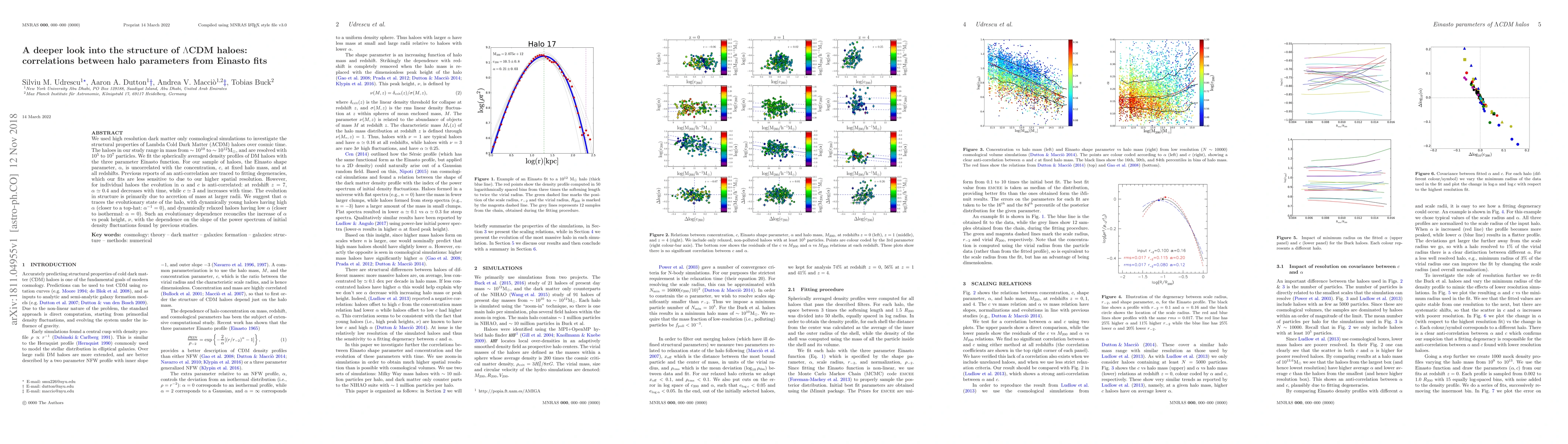 We used high resolution dark matter only cosmological simulations to investigate the structural properties of Lambda Cold Dark Matter ($\Lambda$CDM) haloes over cosmic time. The haloes in our study range in mass from $\sim 10^{10}$ to $\sim 10^{12} \mathrm{M}_\odot$, and are resolved with $10^5$ to $10^7$ particles. We fit the spherically averaged density profiles of DM haloes with the three parameter Einasto function. For our sample of haloes, the Einasto shape parameter, $\alpha$, is uncorrelated with the concentration, $c$, at fixed halo mass, and at all redshifts. Previous reports of an anti-correlation are traced to fitting degeneracies, which our fits are less sensitive to due to our higher spatial resolution. However, for individual haloes the evolution in $\alpha$ and $c$ is anti-correlated: at redshift $z=7$, $\alpha \simeq 0.4$ and decreases with time, while $c\simeq 3$ and increases with time. The evolution in structure is primarily due to accretion of mass at larger radii. We suggest that $\alpha$ traces the evolutionary state of the halo, with dynamically young haloes having high $\alpha$ (closer to a top-hat: $\alpha^{-1}=0$), and dynamically relaxed haloes having low $\alpha$ (closer to isothermal: $\alpha=0$). Such an evolutionary dependence reconciles the increase of $\alpha$ vs peak height, $\nu$, with the dependence on the slope of the power spectrum of initial density fluctuations found by previous studies.
