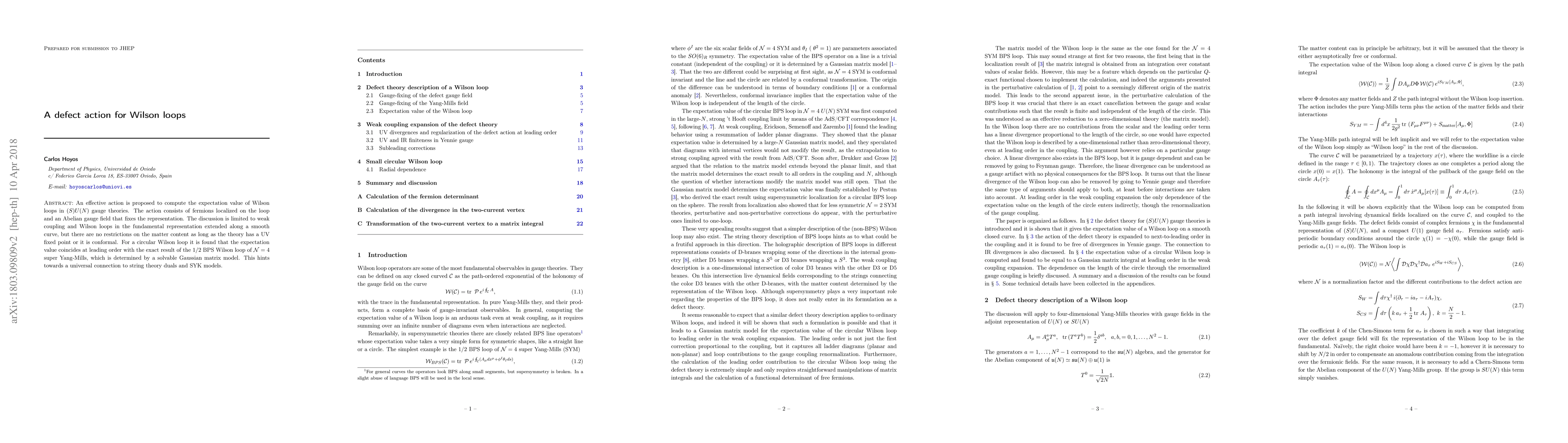 An effective action is proposed to compute the expectation value of Wilson loops in $(S)U(N)$ gauge theories. The action consists of fermions localized on the loop and an Abelian gauge field that fixes the representation. The discussion is limited to weak coupling and Wilson loops in the fundamental representation extended along a smooth curve, but there are no restrictions on the matter content as long as the theory has a UV fixed point or it is conformal. For a circular Wilson loop it is found that the expectation value coincides at leading order with the exact result of the $1/2$ BPS Wilson loop of ${\cal N}=4$ super Yang-Mills, which is determined by a solvable Gaussian matrix model. This hints towards a universal connection to string theory duals and SYK models.
