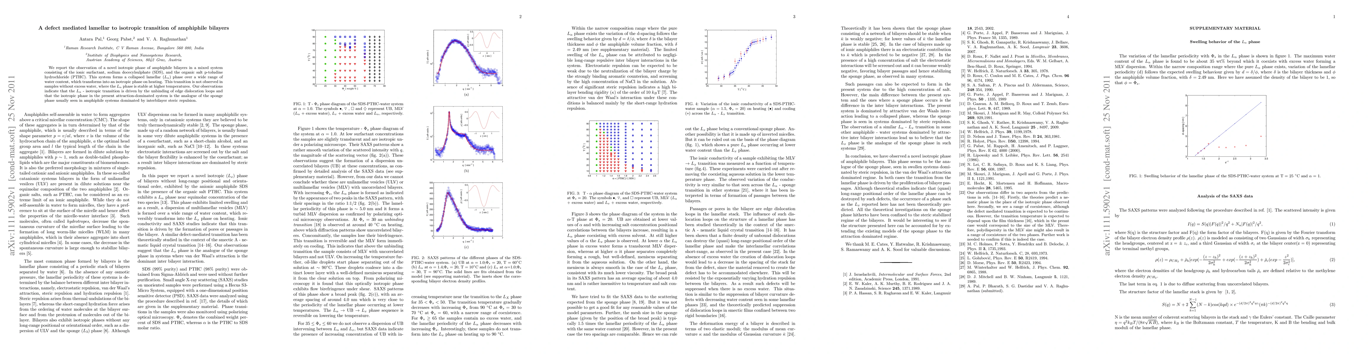 This study reveals a defect-induced lamellar to isotropic phase transition in amphiphile bilayers composed of SDS and PTHC, driven by the unbinding of edge dislocation loops. The transition occurs in the presence of excess water and transforms the collapsed lamellar phase into an isotropic phase, akin to the sponge phase in systems with steric repulsion.