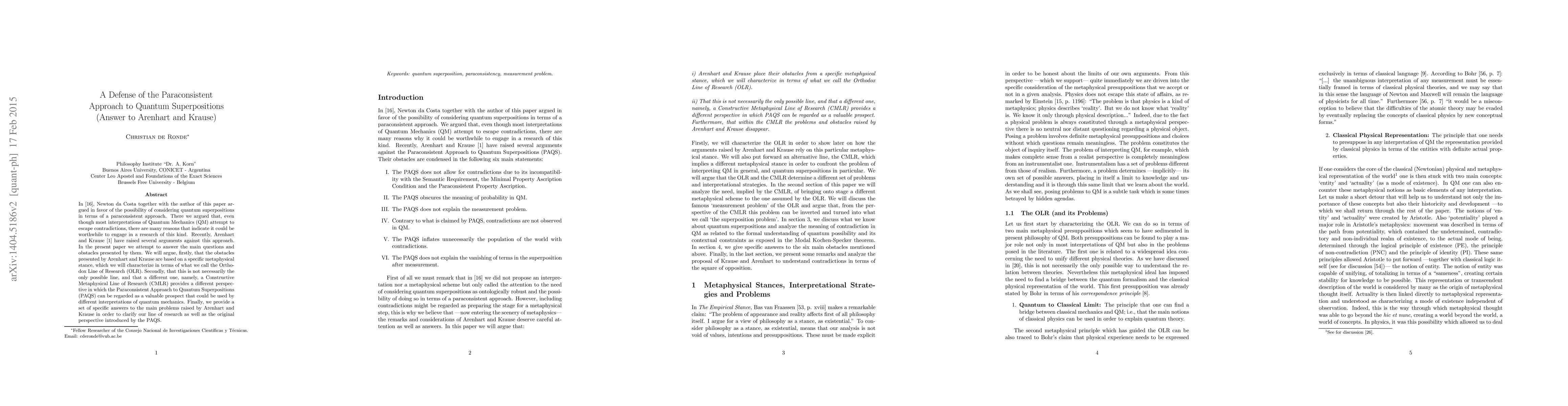 In (da Costa and de Ronde, 2014), Newton da Costa together with the author of this paper argued in favor of the possibility to consider quantum superpositions in terms of a paraconsistent approach. We claimed that, even though most interpretations of quantum mechanics attempt to escape contradictions, there are many hints that indicate it could be worth while to engage in a research of this kind. Recently, Arenhart and Krause (2014) have raised several arguments against this approach. In the present paper we attempt to answer the main questions presented by Arenhart and Krause. We will argue, firstly, that the obstacles presented by them are based on a specific metaphysical stance, which we will characterize in terms of what we call the Orthodox Line of Research (OLR). Secondly, that this is not necessarily the only possible line, and that a different one, namely, a Constructive Metaphysical Line of Research (CMLR) provides a different perspective in which the Paraconsistent Approach to Quantum Superpositions (PAQS) can be regarded as a valuable prospect that could be used by different interpretations of quantum mechanics. Finally, we provide a set of specific answers to the main problems raised by Arenhart and Krause in order to clarify our line of research as well as the original perspective introduced by the PAQS.