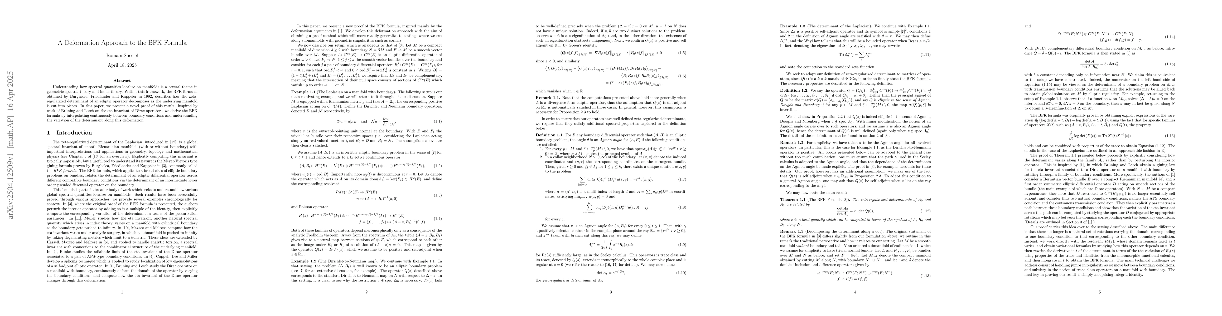 This research contributes to geometric spectral theory and index theory by offering a fresh perspective on the BFK formula, which is crucial for understanding spectral localization on manifolds. The novel deformation approach may lead to new insights and techniques in related areas of mathematical physics.