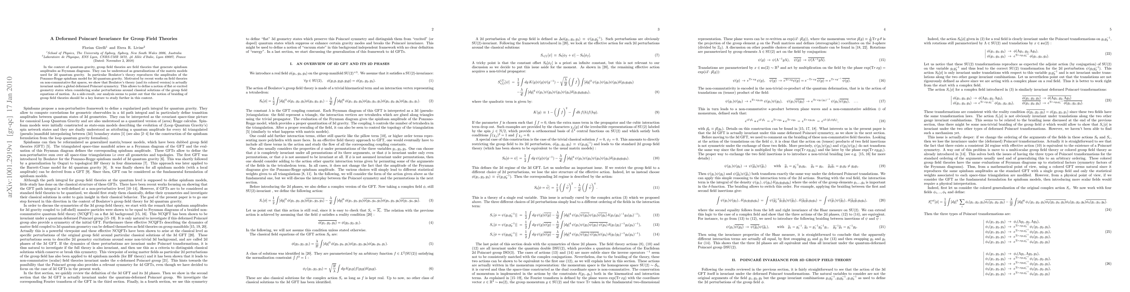 In the context of quantum gravity, group field theories are field theories that generate spinfoam amplitudes as Feynman diagrams. They can be understood as generalizations of the matrix models used for 2d quantum gravity. In particular Boulatov's theory reproduces the amplitudes of the Ponzano-Regge spinfoam model for 3d quantum gravity. Motivated by recent works on field theories on non-commutative flat spaces, we show that Boulatov's theory (and its colored version) is actually invariant under a global deformed Poincare symmetry. This allows to define a notion of flat/excited geometry states when considering scalar perturbations around classical solutions of the group field equations of motion. As a side-result, our analysis seems to point out that the notion of braiding of group field theories should be a key feature to study further in this context.