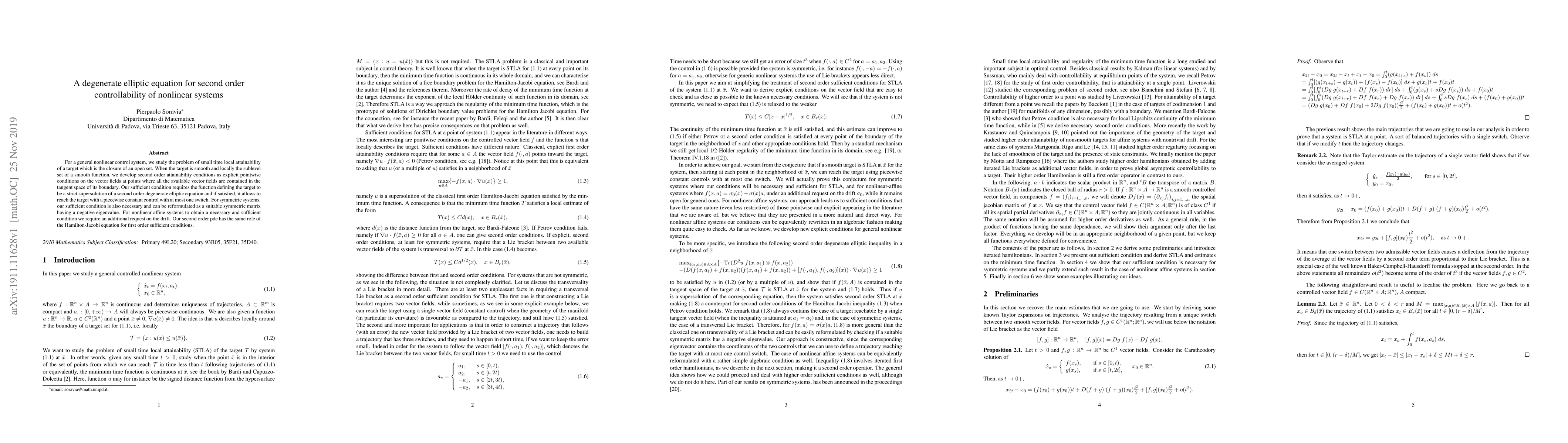 A new method for determining controllability in nonlinear systems is introduced, using a second-order degenerate elliptic equation to ensure reachability of targets with minimal control actions.