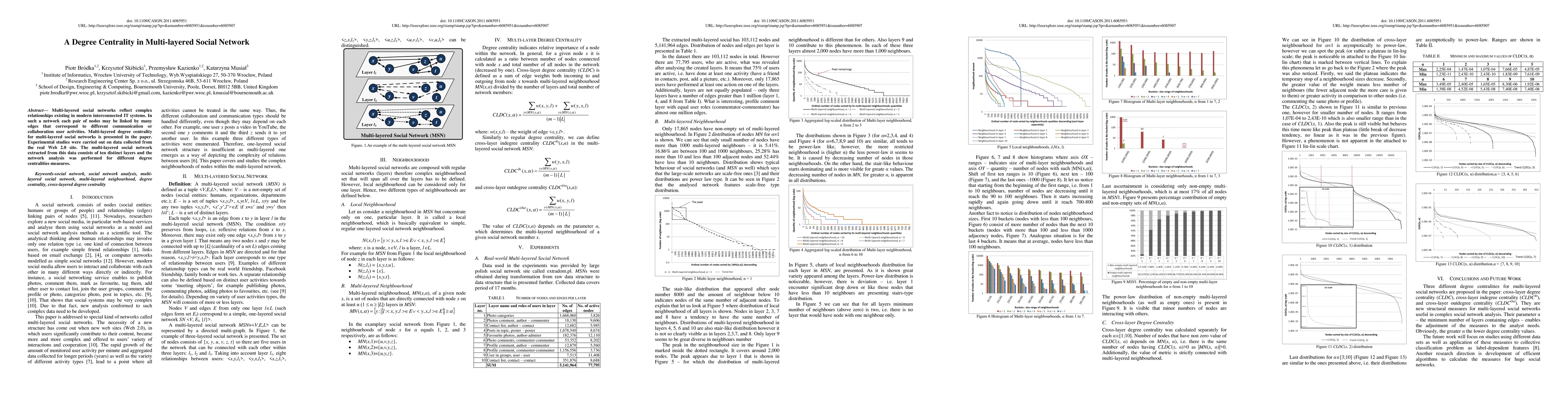 This paper introduces a multi-layered degree centrality measure for complex social networks, where nodes are connected by multiple edges representing different activities. The study applies this measure to a real Web 2.0 data set, revealing insights from a network with ten distinct layers.