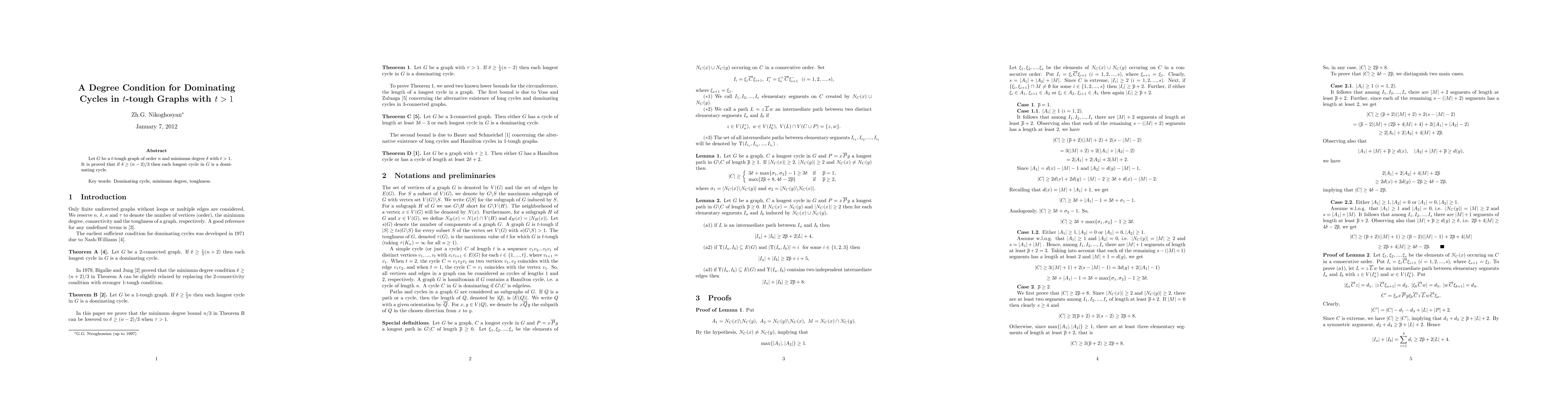 Let $G$ be a $t$-tough graph of order $n$ and minimum degree $\delta$ with $t>1$. It is proved that if $\delta\ge(n-2)/3$ then each longest cycle in $G$ is a dominating cycle.