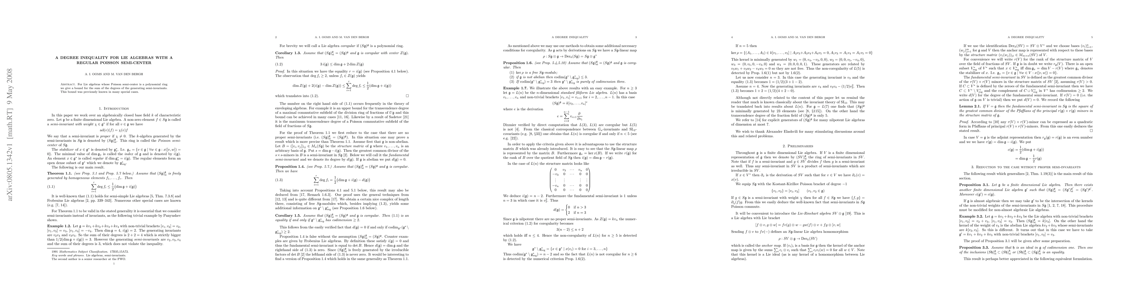 This paper establishes a degree inequality for Lie algebras where the Poisson semi-center is a polynomial ring, providing a new bound for the sum of the degrees of generating semi-invariants, extending previously known results for special cases.