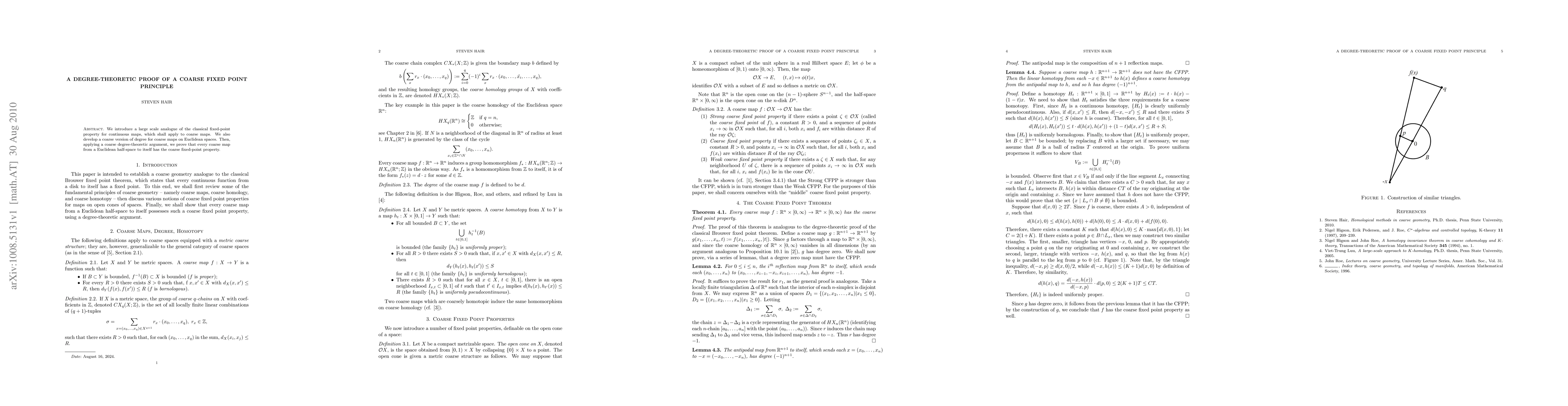 This paper introduces a coarse fixed-point principle for continuous maps, developing a coarse version of degree theory for Euclidean spaces and proving that any coarse map from a Euclidean half-space to itself has a fixed point.