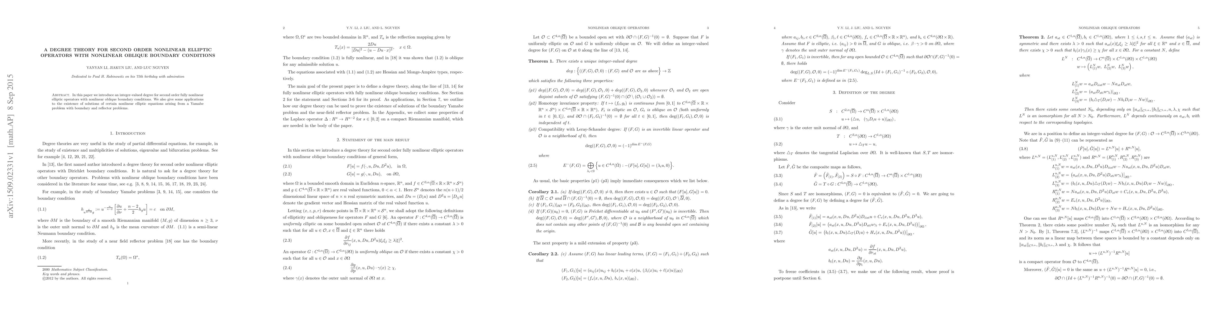 This paper presents a new degree theory for second order nonlinear elliptic operators under oblique boundary conditions, providing a method to determine the existence of solutions for specific nonlinear elliptic equations. It applies to Yamabe problems with boundary and reflector problems.