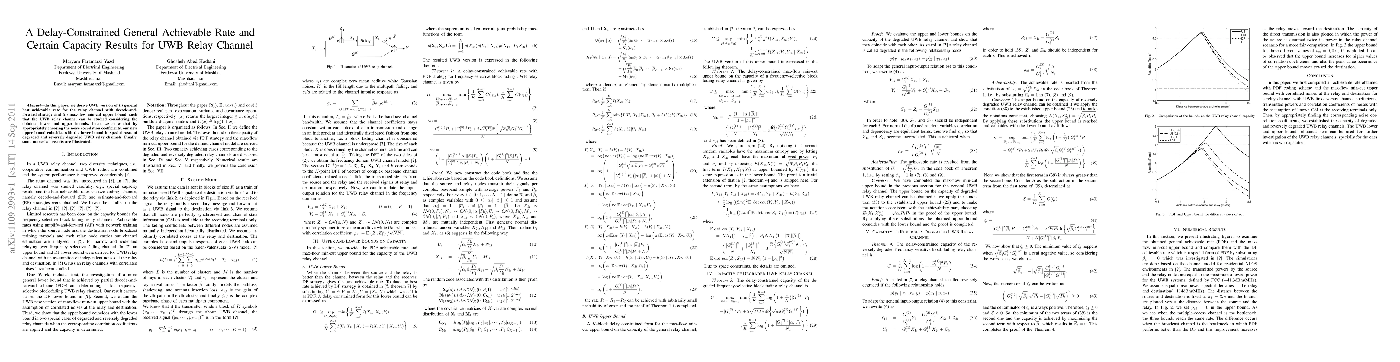 This paper derives the general best achievable rate and a max-flow min-cut upper bound for a delay-constrained ultra-wideband (UWB) relay channel using a decode-and-forward strategy. It shows that these bounds coincide under specific conditions, providing insights into the channel's capacity.
