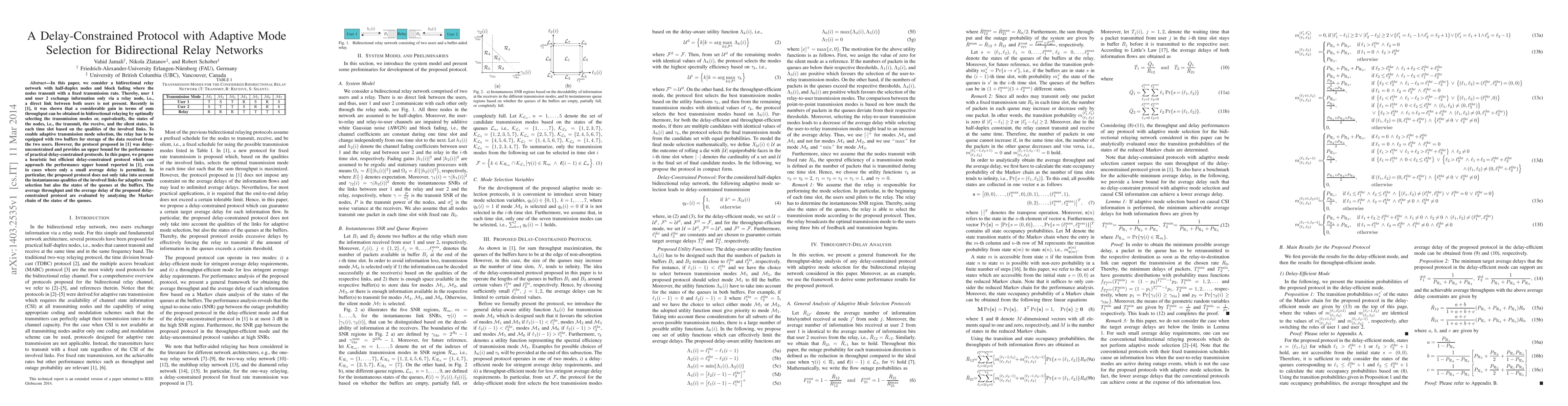 This paper proposes a delay-constrained protocol for bidirectional relay networks with adaptive mode selection, aiming to optimize throughput while managing limited delay. The protocol considers both link qualities and buffer queue states for mode selection, achieving near-optimal performance even under strict delay constraints.