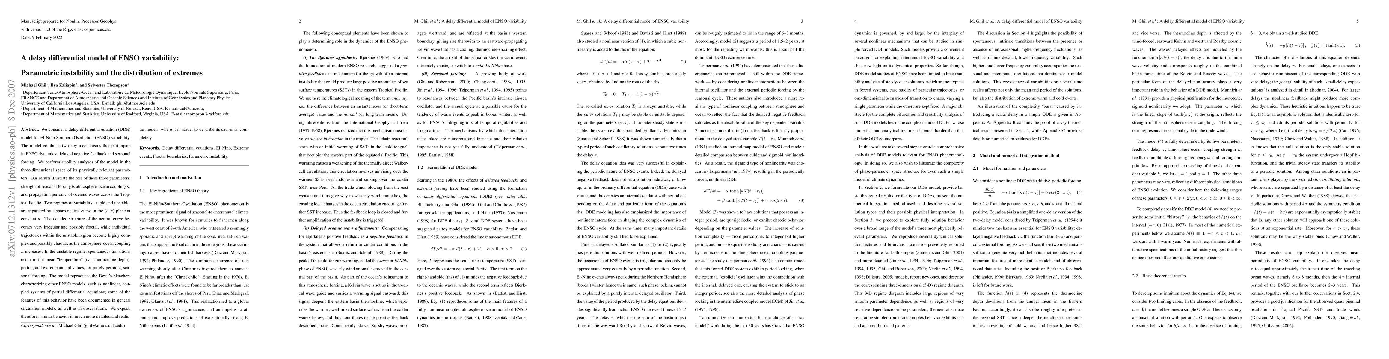 A delay differential model of ENSO variability reveals two regimes of stability, with a sharp neutral curve separating stable and unstable behavior in response to three key parameters: seasonal forcing strength, atmosphere-ocean coupling, and ocean wave propagation period.