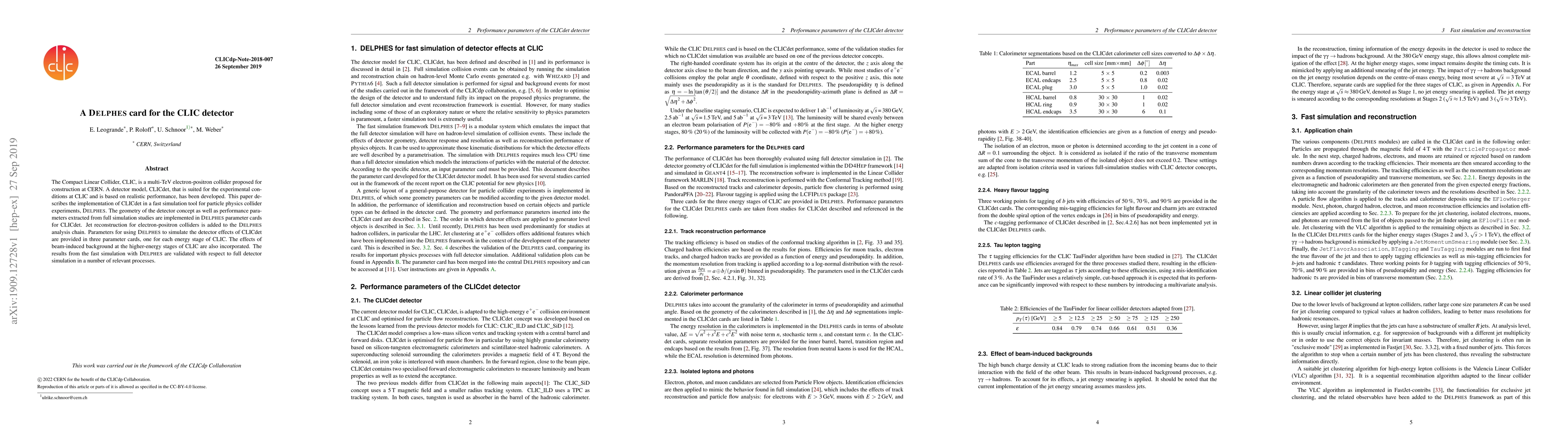 This paper details the implementation of the CLICdet detector model in the DELPHES fast simulation tool, providing parameter cards for CLIC's three energy stages and incorporating jet reconstruction and beam-induced background effects. The results from the DELPHES simulations are validated against full detector simulations for various processes.