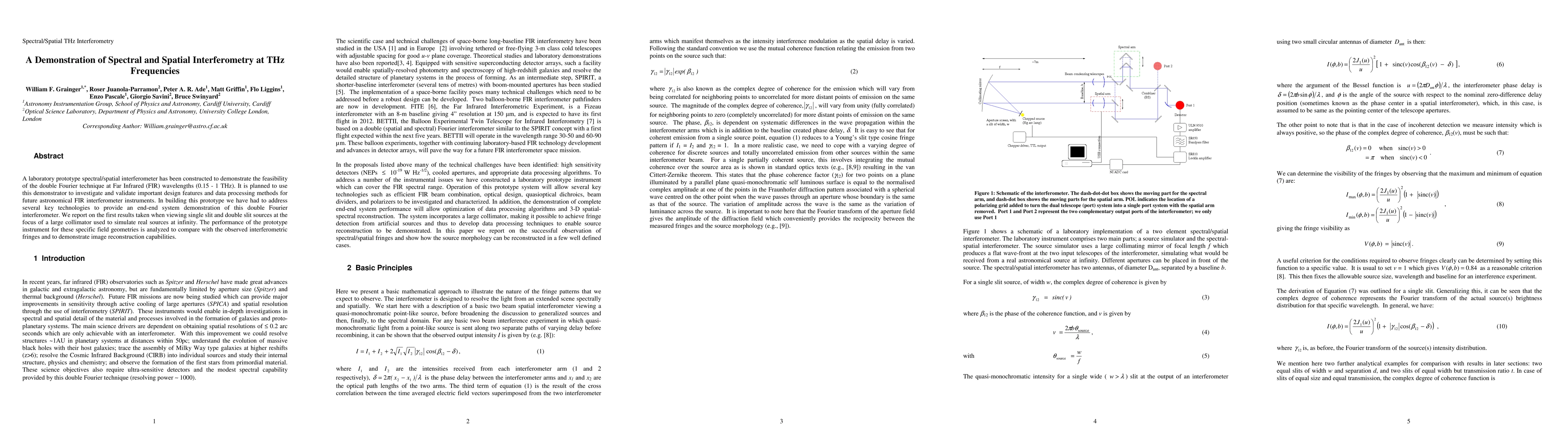 Researchers demonstrate a laboratory prototype for spectral/spatial interferometry at THz frequencies, showing promise for future astronomical FIR instruments.