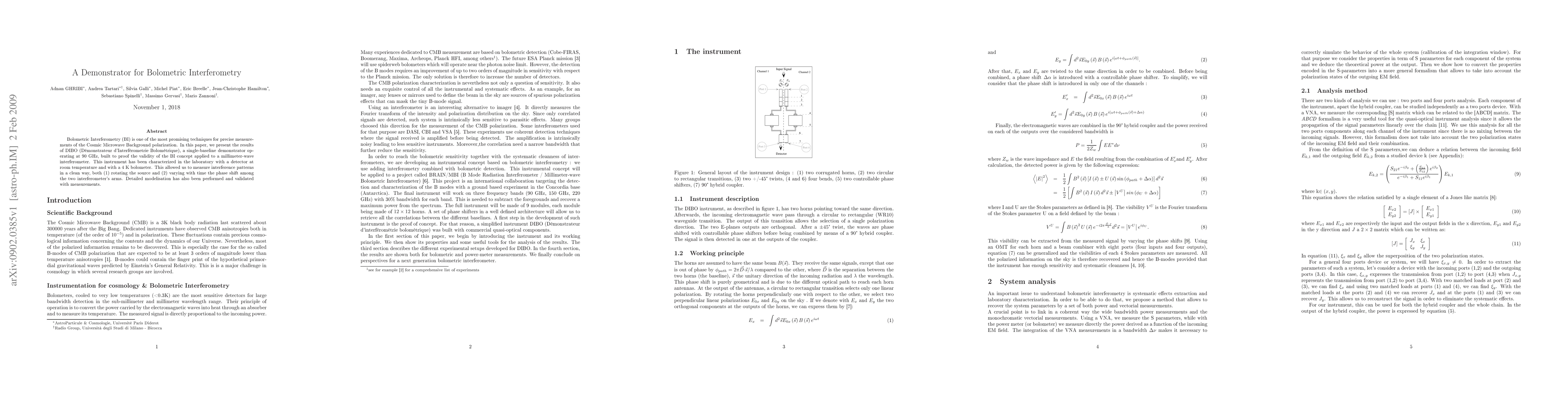 Researchers developed a demonstrator for bolometric interferometry to test its validity in measuring Cosmic Microwave Background polarization with millimeter-wave interferometers. They successfully characterized the instrument and validated its performance using laboratory measurements and detailed modeling.