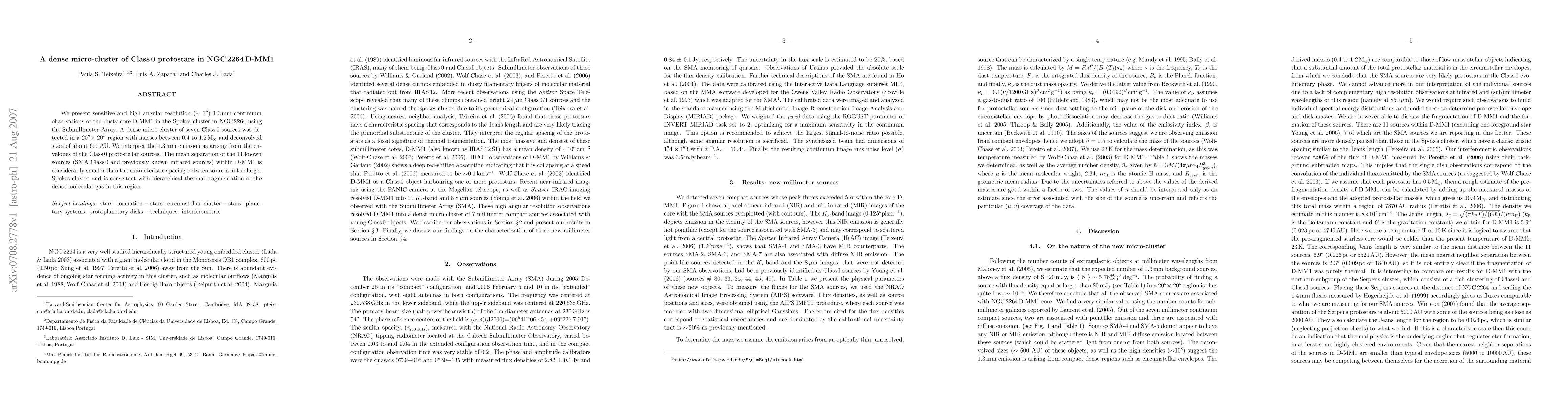 We present sensitive and high angular resolution (~1") 1.3 mm continuum observations of the dusty core D-MM1 in the Spokes cluster in NGC 2264 using the Submillimeter Array. A dense micro-cluster of seven Class 0 sources was detected in a 20" x 20" region with masses between 0.4 to 1.2 solar masses and deconvolved sizes of about 600 AU. We interpret the 1.3 mm emission as arising from the envelopes of the Class 0 protostellar sources. The mean separation of the 11 known sources (SMA Class 0 and previously known infrared sources) within D-MM1 is considerably smaller than the characteristic spacing between sources in the larger Spokes cluster and is consistent with hierarchical thermal fragmentation of the dense molecular gas in this region.