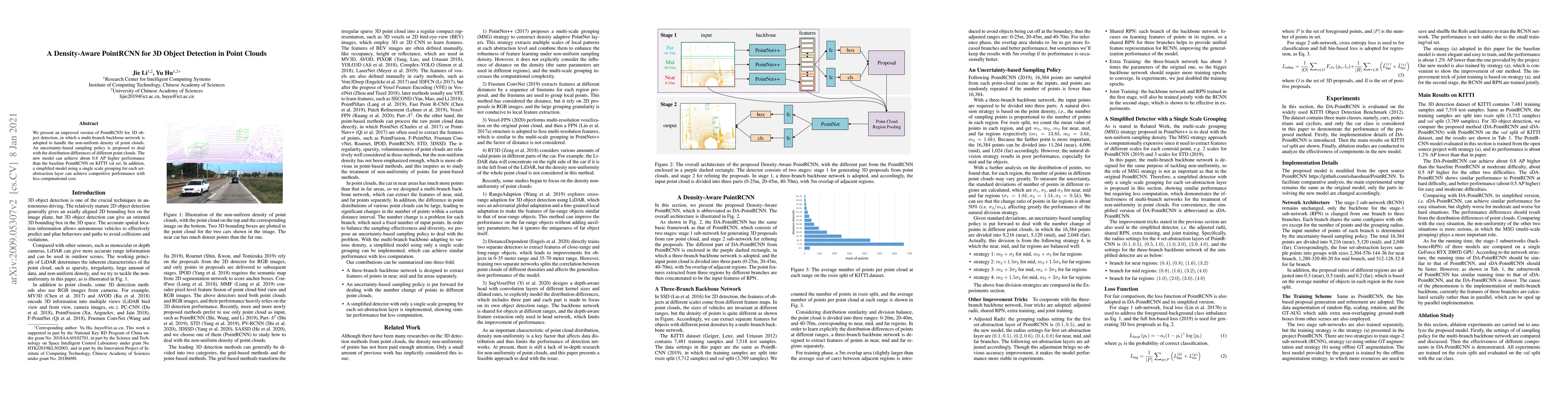 This paper introduces a density-aware PointRCNN with a multi-branch backbone to manage point cloud density variations, achieving 0.8 AP improvement over the baseline on the KITTI dataset. It also proposes a simplified model with reduced computational cost while maintaining competitive performance.