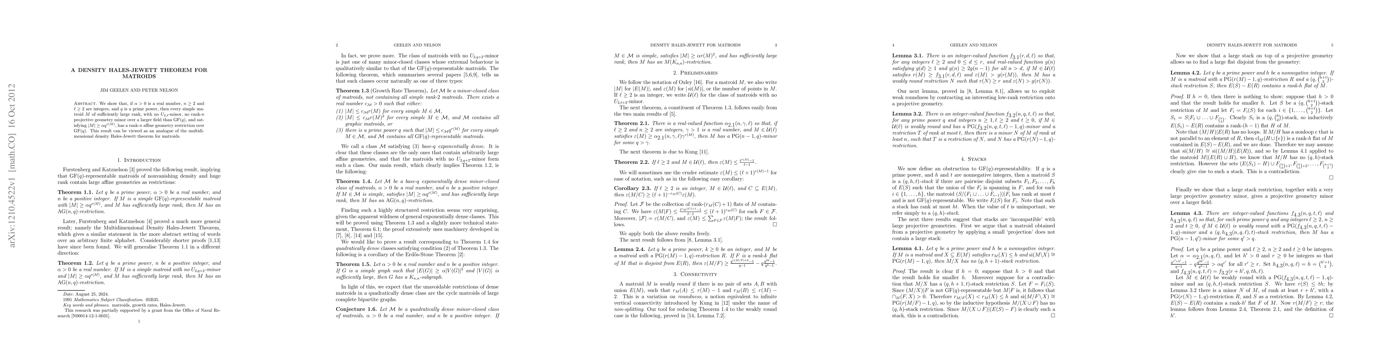 We show that, if $\alpha > 0$ is a real number, $n \ge 2$ and $\ell \ge 2$ are integers, and $q$ is a prime power, then every simple matroid $M$ of sufficiently large rank, with no $U_{2,\ell}$-minor, no rank-$n$ projective geometry minor over a larger field than $\GF(q)$, and satisfying $|M| \ge \alpha q^{r(M)}$, has a rank-$n$ affine geometry restriction over $\GF(q)$. This result can be viewed as an analogue of the Multidimensional Density Hales-Jewett Theorem for matroids.