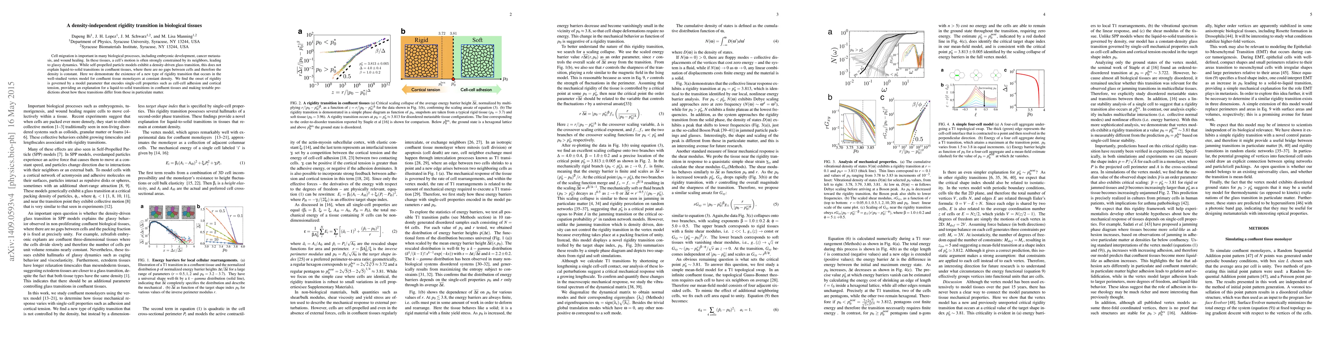 This paper demonstrates a density-independent glass transition in biological tissues, showing that rigidity in confluent tissue monolayers arises from single-cell properties rather than density, providing insights into the mechanisms behind liquid-to-solid transitions in such tissues.