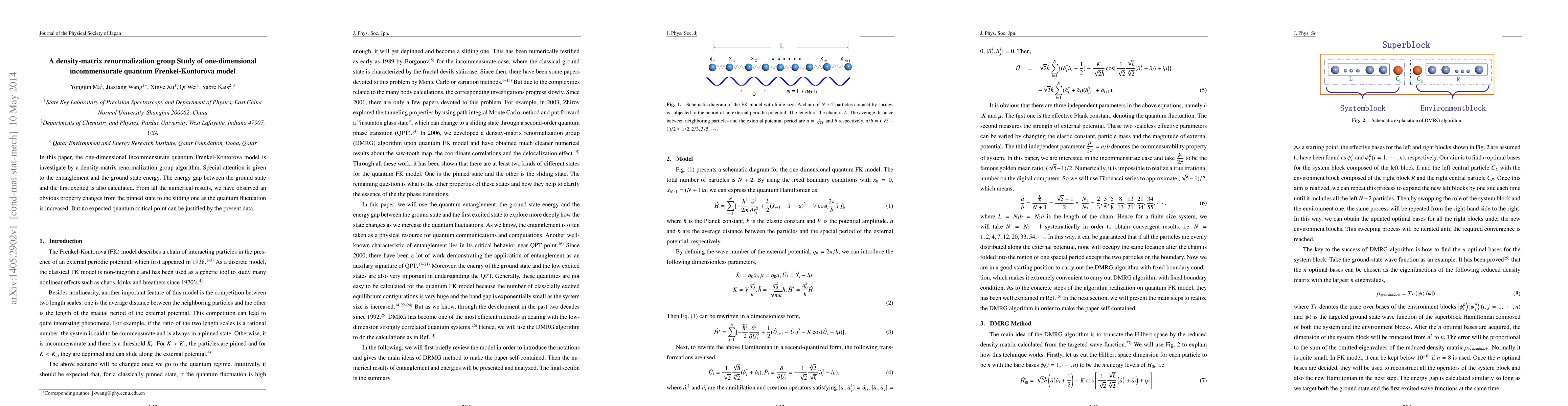 This study uses a density-matrix renormalization group to investigate the one-dimensional incommensurate quantum Frenkel-Kontorova model, focusing on entanglement, ground state energy, and the energy gap. It observes a transition from a pinned to a sliding state with increased quantum fluctuations but finds no evidence of a quantum critical point.
