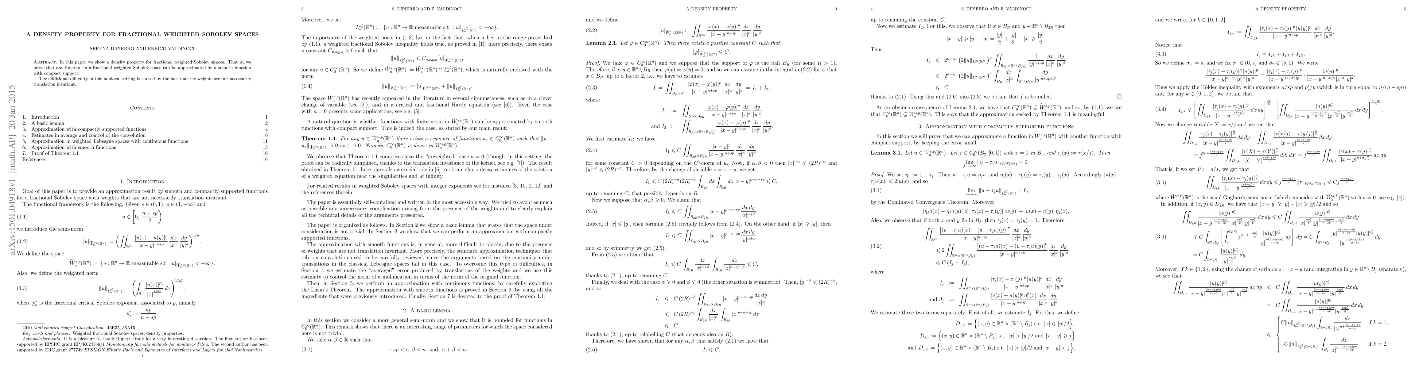 Summary: This paper establishes a density property for fractional weighted Sobolev spaces, demonstrating that smooth functions with compact support can approximate any function in these spaces. The challenge arises due to the non-translation invariant nature of the weights.