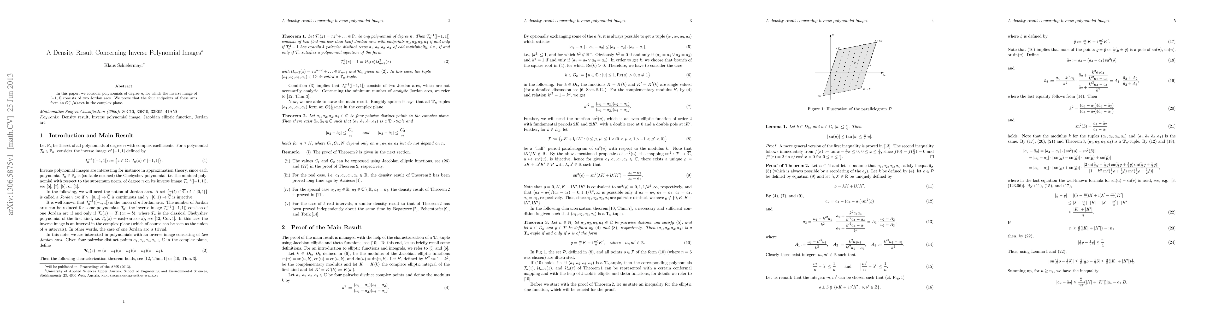 This paper proves that for polynomials of degree $n$ with inverse images of $[-1,1]$ consisting of two Jordan arcs, the four endpoints of these arcs form an ${\cal O}(1/n)$-net in the complex plane. This establishes a density result for the inverse polynomial images.
