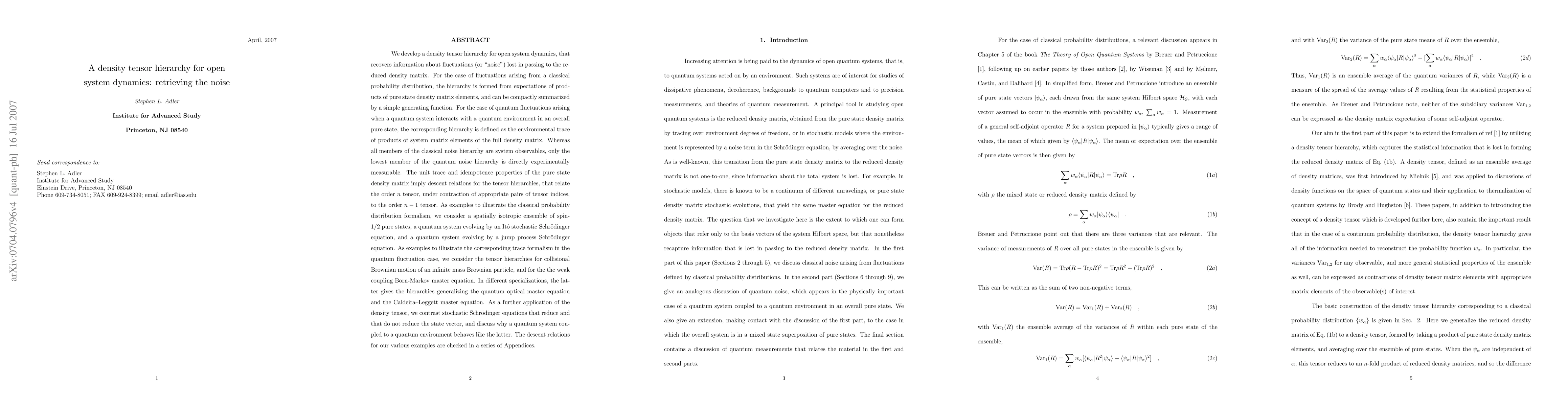 The paper presents a density tensor hierarchy framework for open quantum systems, extending the concept of reduced density matrices to include fluctuation information.