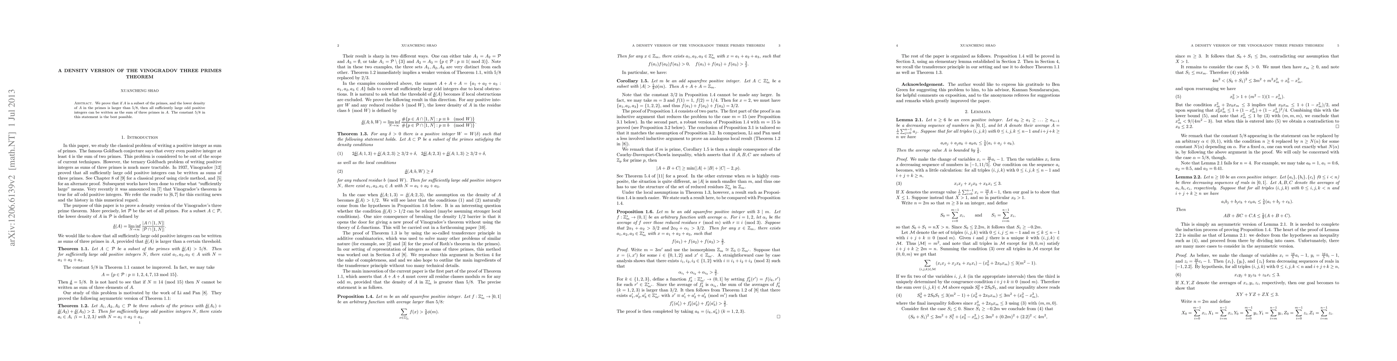 Researchers prove that if 5/8 of prime numbers fall into a subset A, then nearly all odd integers can be expressed as the sum of three primes in A.