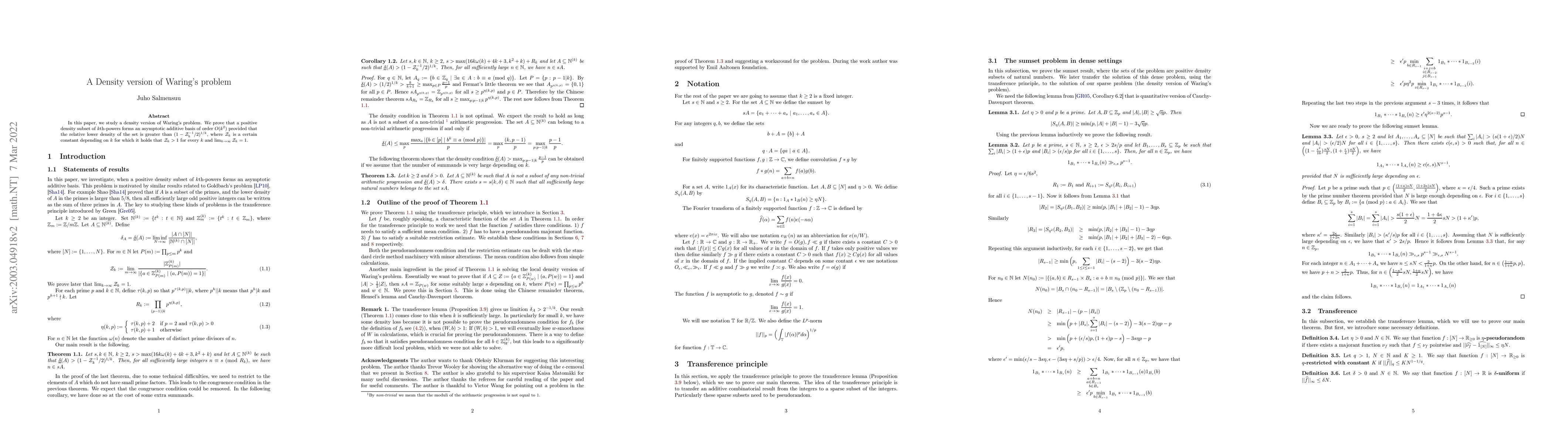 This paper proves that a subset of kth-powers with high density forms an additive basis for estimating sets, provided the density meets a certain threshold. The result holds for large values of k and has implications for understanding distributional properties of numbers.