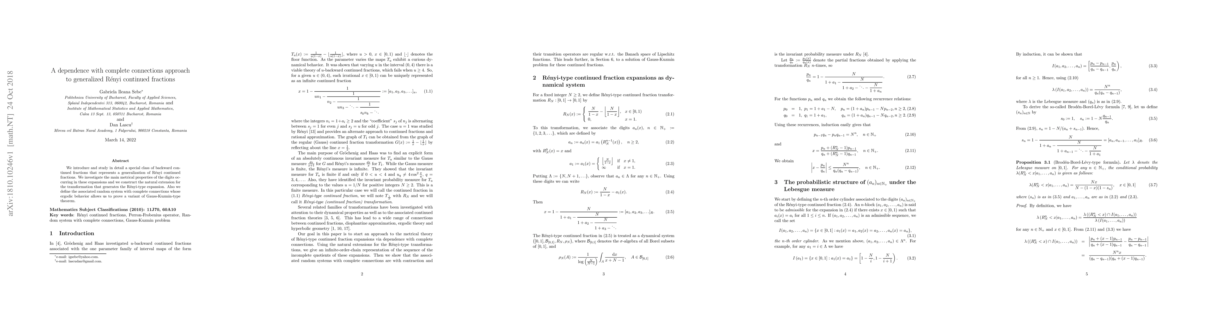 This paper introduces a new class of generalized R\'enyi continued fractions and explores their metrical properties. It constructs a natural extension for the transformation generating these expansions and defines a random system with complete connections, proving a variant of the Gauss-Kuzmin theorem.
