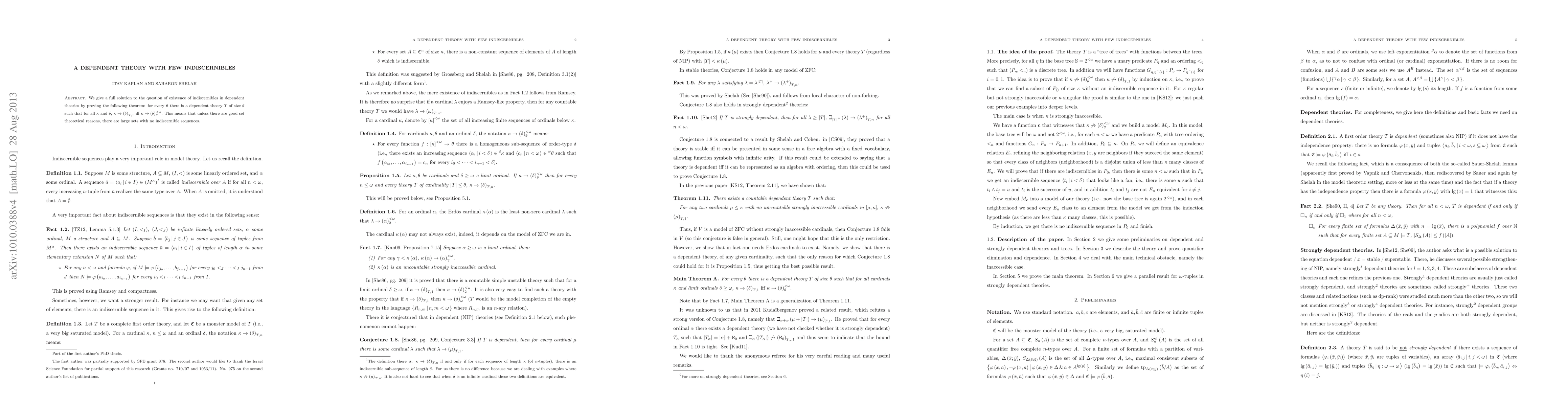 We give a full solution to the question of existence of indiscernibles in dependent theories by proving the following theorem: for every $\theta$ there is a dependent theory $T$ of size $\theta$ such that for all $\kappa$ and $\delta$, $\kappa\to\left(\delta\right)_{T,1}$ iff $\kappa\to\left(\delta\right)_{\theta}^{<\omega}$. This means that unless there are good set theoretical reasons, there are large sets with no indiscernible sequences.