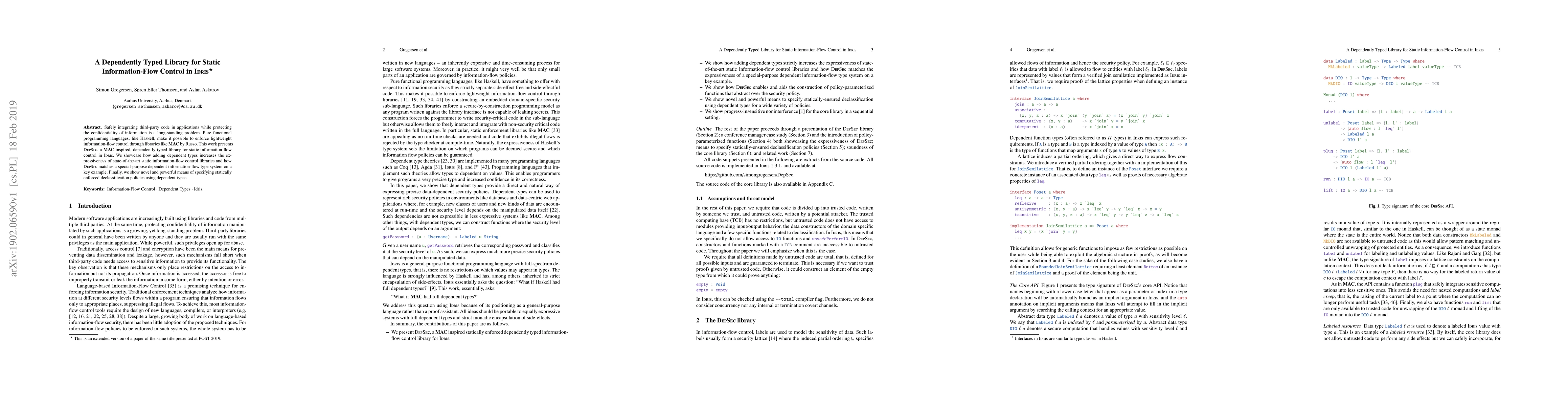 This paper introduces DepSec, a dependently typed library for static information-flow control in Idris, inspired by MAC. It demonstrates how dependent types enhance the expressiveness of static information-flow control and provides a framework for specifying and enforcing declassification policies.