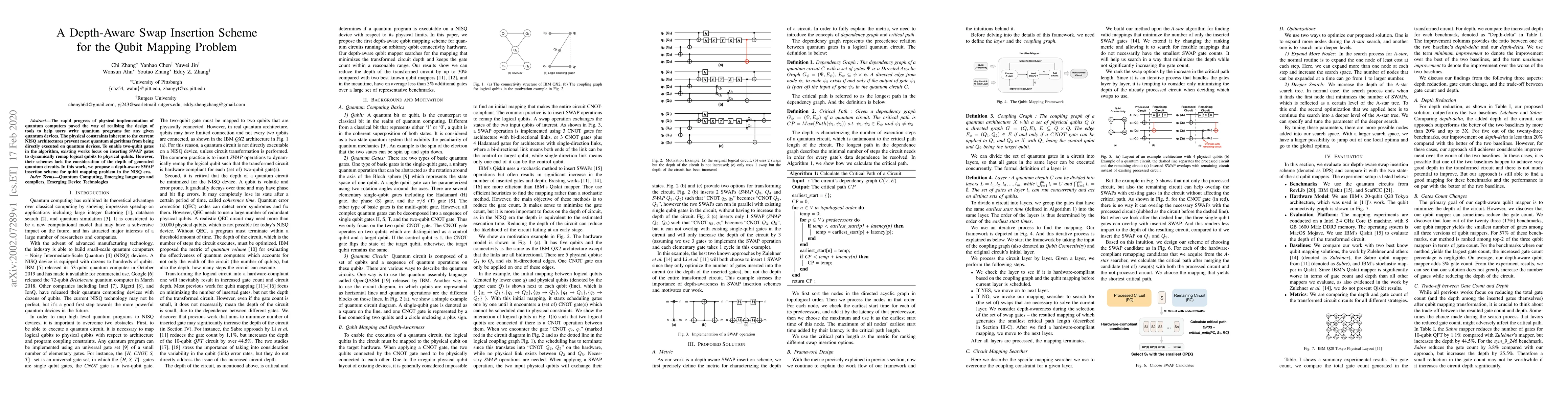 This paper introduces a depth-aware SWAP insertion scheme designed to improve qubit mapping in near-term quantum computers, addressing the limitations of existing methods by optimizing quantum circuit depth for better performance on NISQ architectures.
