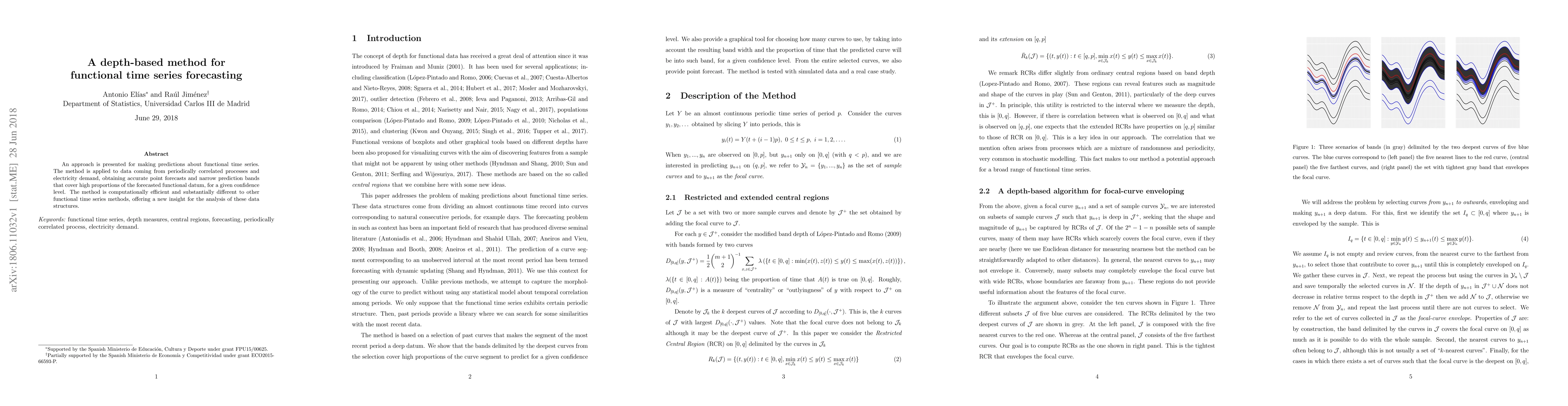 A new method for forecasting functional time series is presented, achieving accurate point forecasts with narrow prediction bands using periodically correlated processes and electricity demand data.