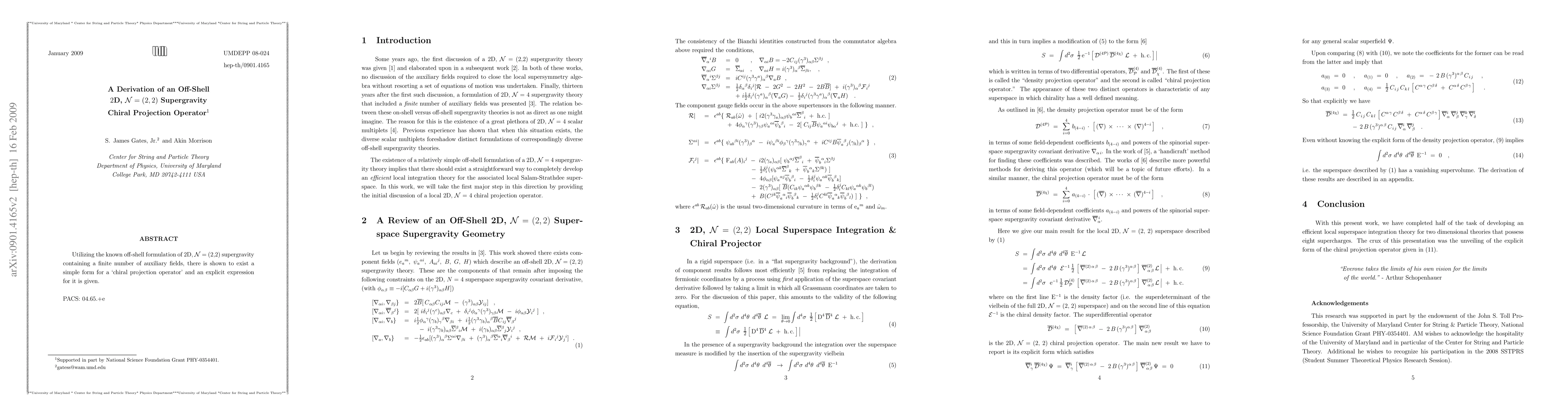Utilizing the known off-shell formulation of 2D, N = (2,2) supergravity, containing a finite number of auxiliary fields, there is shown to exist a simple form for a 'chiral projection operator' and an explicit expression for it is given.