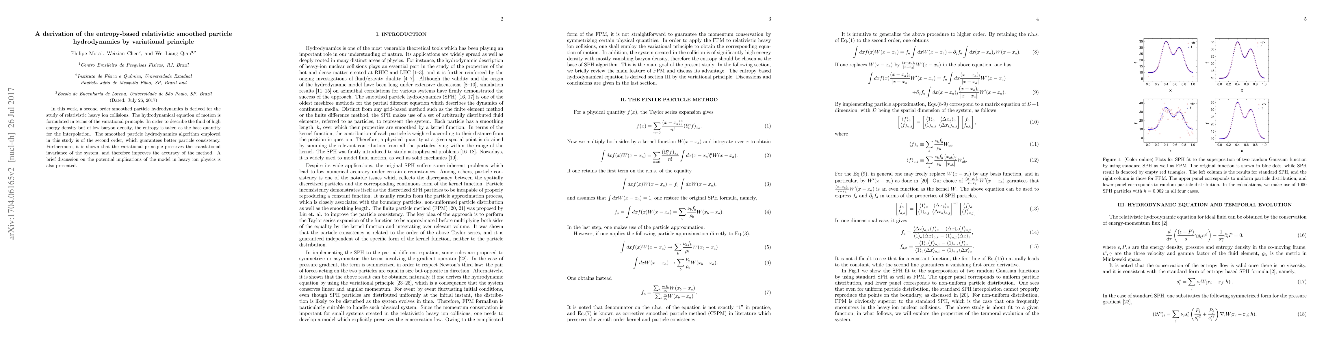 This paper derives a second-order relativistic smoothed particle hydrodynamics model for studying relativistic heavy ion collisions, employing the variational principle and entropy-based interpolation for high energy density fluids. The method preserves translational invariance and enhances accuracy, with implications for heavy ion physics.