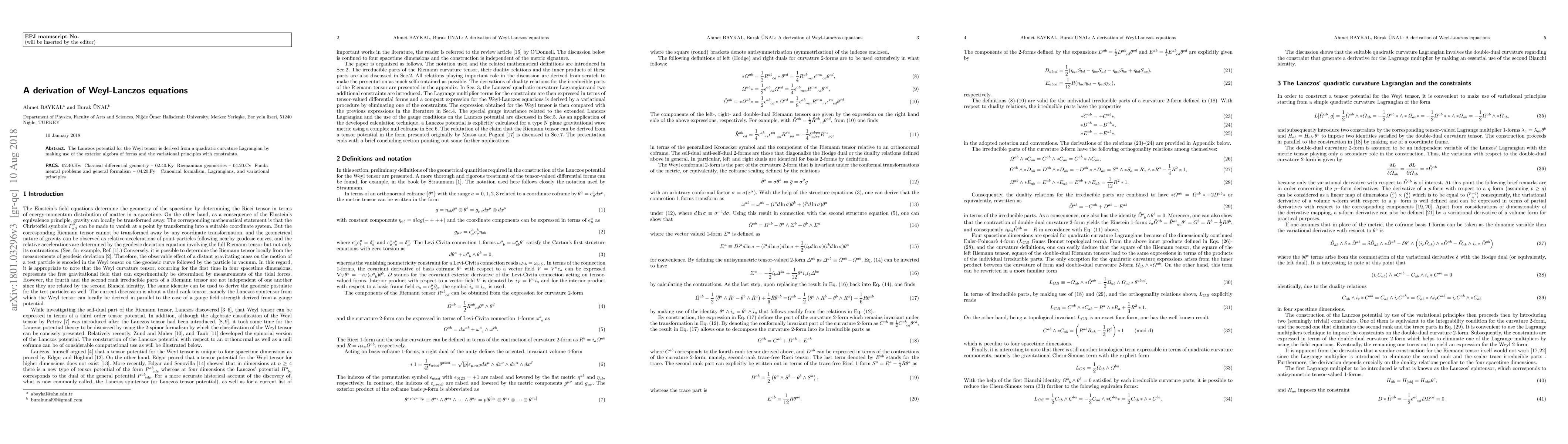 The Lanczos potential for the Weyl tensor is derived from a quadratic curvature Lagrangian by making use of the exterior algebra of forms and the variational principles with constraints.