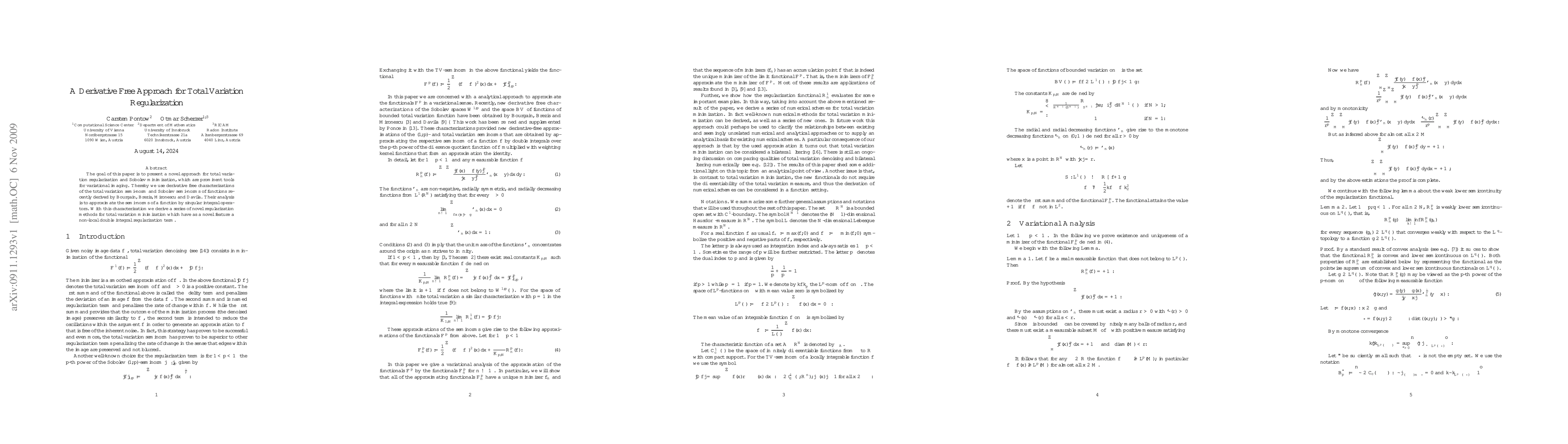 The goal of this paper is to present a novel approach for total variation regularization and Sobolev minimization, which are prominent tools for variational imaging. Thereby we use derivative free characterizations of the total variation semi-norm and Sobolev semi-norms of functions recently derived by Bourgain, Br\'ezis, Mironescu and D\'avila. Their analysis is to approximate the semi-norms of a function by singular integral operators. With this characterization we derive a series of novel regularization methods for total variation minimization which have as a novel feature a non-local double integral regularization term.