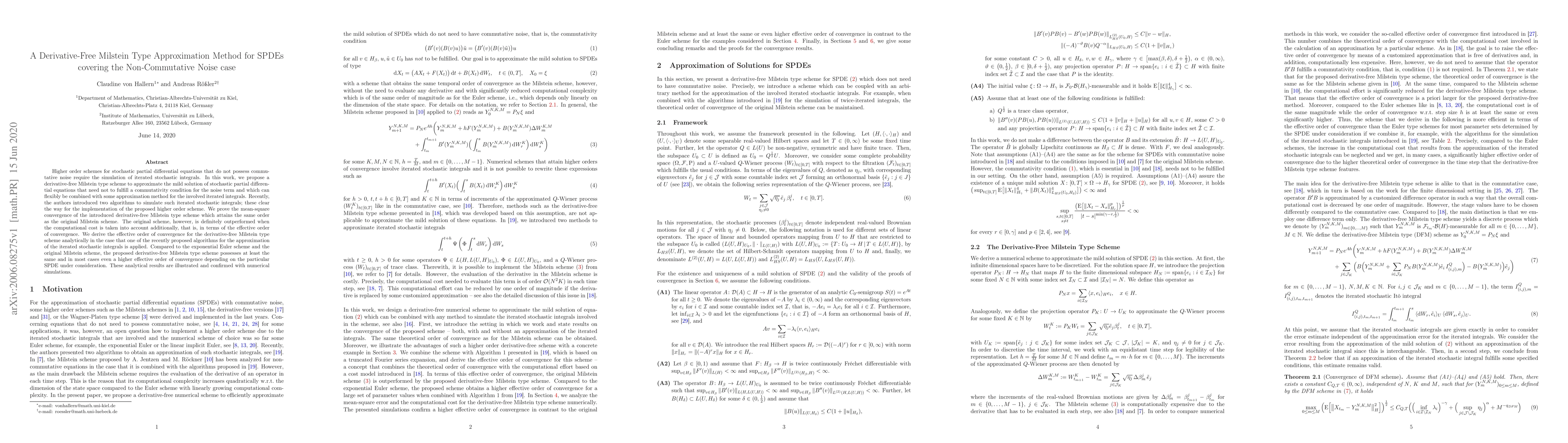 This paper proposes a derivative-free Milstein type scheme for approximating solutions to stochastic partial differential equations (SPDEs) with non-commutative noise. The scheme achieves the same mean-square convergence order as the original Milstein scheme but with lower computational cost, demonstrating higher effective order of convergence compared to the exponential Euler scheme and the original Milstein scheme.