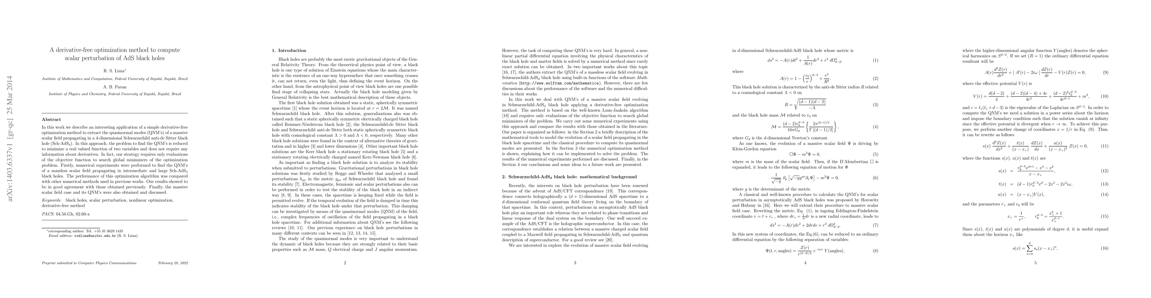 In this work we describe an interesting application of a simple derivative-free optimization method to extract the quasinormal modes (QNM's) of a massive scalar field propagating in a 4-dimensional Schwarzschild anti-de Sitter black hole (Sch-AdS$_4$). In this approach, the problem to find the QNM's is reduced to minimize a real valued function of two variables and does not require any information about derivatives. In fact, our strategy requires only evaluations of the objective function to search global minimizers of the optimization problem. Firstly, numerical experiments were performed to find the QNM's of a massless scalar field propagating in intermediate and large Sch-AdS$_4$ black holes. The performance of this optimization algorithm was compared with other numerical methods used in previous works. Our results showed to be in good agreement with those obtained previously. Finally, the massive scalar field case and its QNM's were also obtained and discussed.