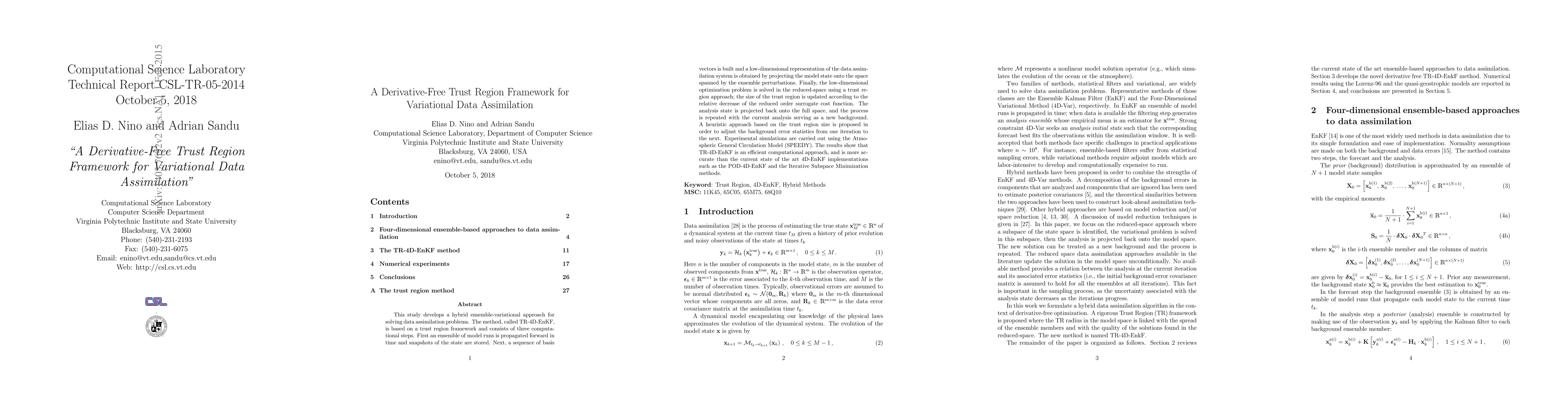 This paper introduces TR-4D-EnKF, a derivative-free trust region framework for variational data assimilation, combining ensemble methods and low-dimensional optimization. Experimental results show that TR-4D-EnKF outperforms existing 4D-EnKF implementations in efficiency and accuracy.