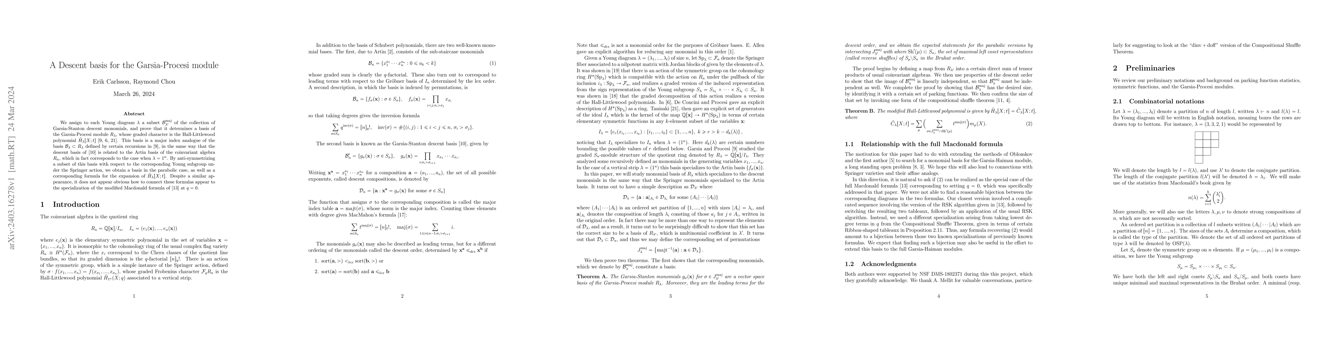 This paper introduces a new basis for the Garsia-Procesi module $R_\lambda$ based on Garsia-Stanton descent monomials, which corresponds to the Hall-Littlewood polynomial $\tilde{H}_{\lambda}[X;t]$. It extends the Artin basis for coinvariant algebras and provides a formula for its expansion, though no clear connection to Macdonald polynomials is apparent.