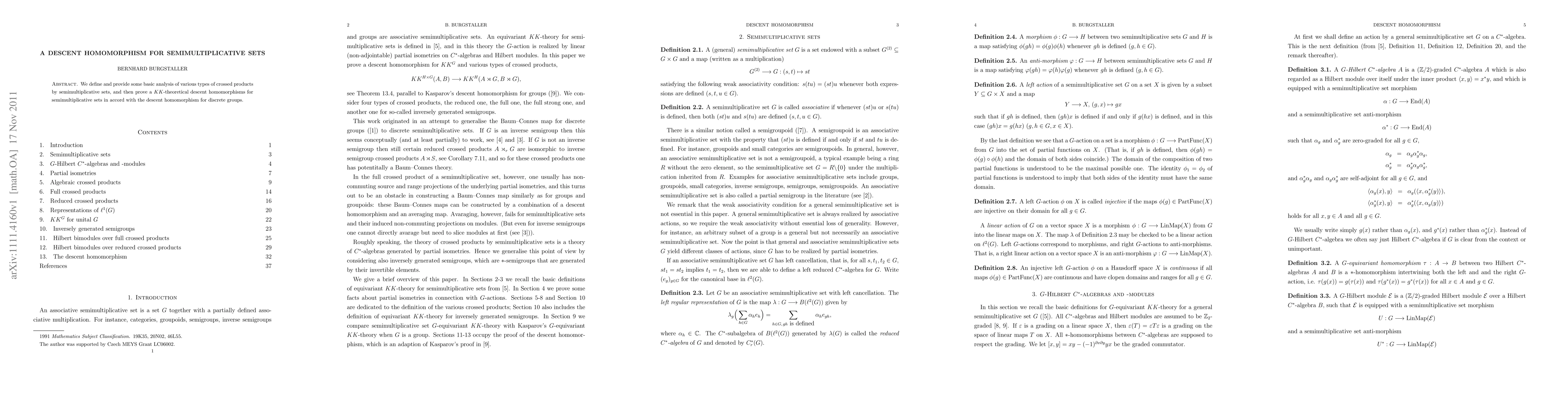 This paper introduces a descent homomorphism for semimultiplicative sets, providing a $KK$-theoretical framework for analyzing crossed products of these sets, similar to the existing descent homomorphism for discrete groups.