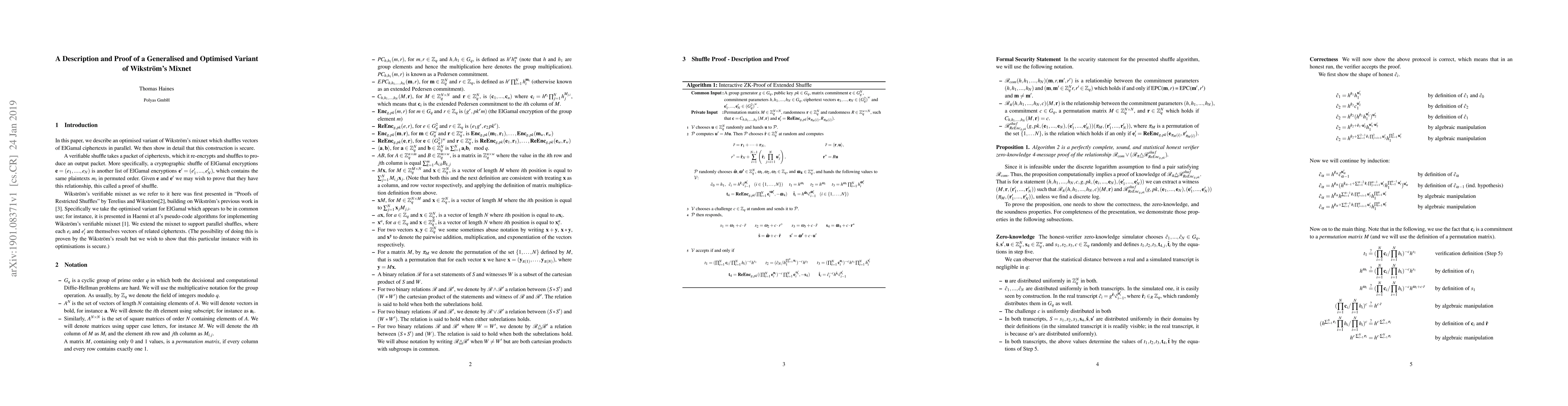 In this paper, we describe an optimised variant of Wikstr\"om's mixnet which shuffles vectors of ElGamal ciphertexts in parallel. We then show in detail that this construction is secure. Wikstr\"om's verifiable mixnet as we refer to it here was first presented in "Proofs of Restricted Shuffles" by Terelius and Wikstr\"om, building on Wikstr\"om's previous work. Specifically we take the optimised variant for ElGamal which appears to be in common use; for instance, it is presented in Haenni et al's "Pseudo-Code Algorithms for Verifiable Re-Encryption Mix-Nets". We extend the mixnet to support parallel shuffles. (The possibility of doing this is proven by the Wikstr\"om's result but we wish to show that this particular instance with its optimisations is secure.)