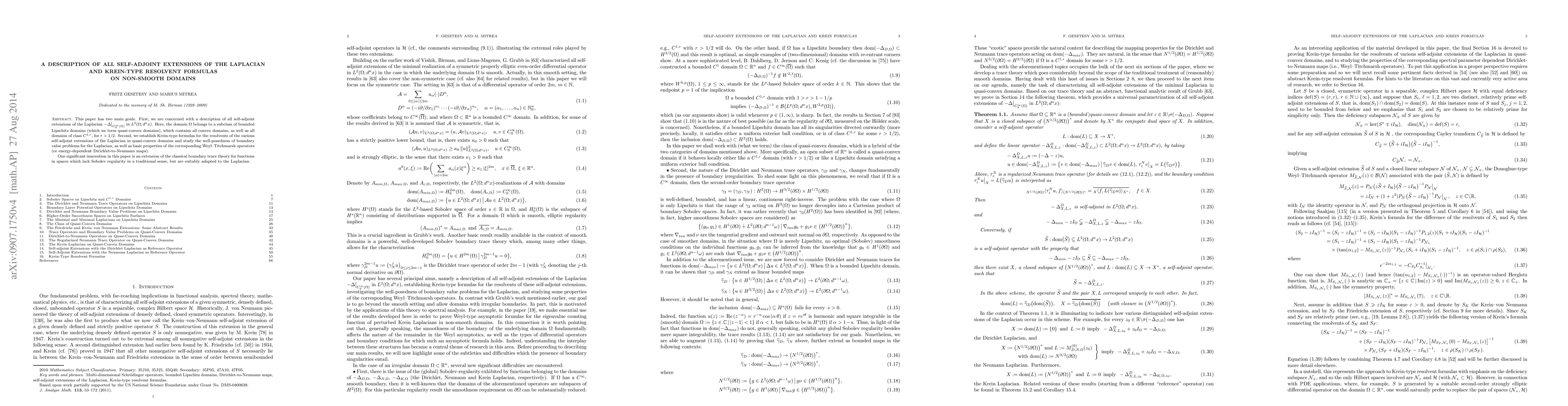 This paper classifies self-adjoint extensions of the Laplacian in quasi-convex domains and establishes Krein-type resolvent formulas for these extensions, introducing a novel extension of boundary trace theory for non-traditional function spaces.